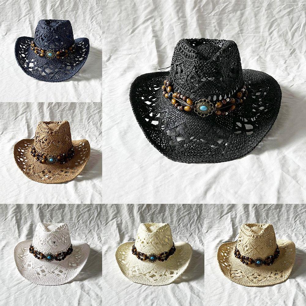 Сомбреро из соломы, плетеное, с вырезами, шляпа ковбоя в западном стиле, богемная соломенная шляпа для отдыха на открытом воздухе