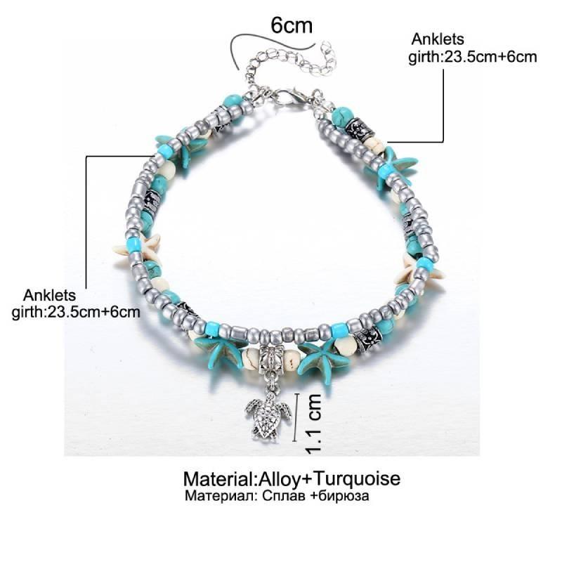 Винтажный синий браслет на ногу с ракушкой морской звезды, пляжный браслет на ногу с черепахой, отпускной браслет на ногу с рисовыми бусинами — купить товар онлайн с бесплатной доставкой по всему миру!