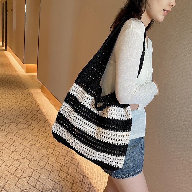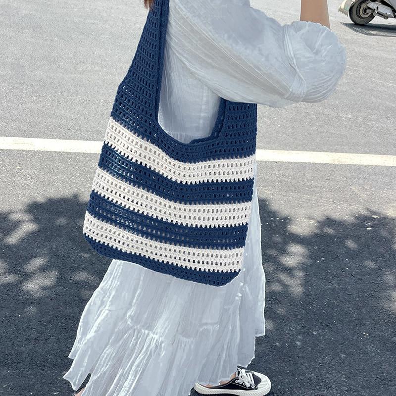 Пляжная вязаная сумка ручной работы для женщин, легкая вязаная сумка-тоут, летняя сумка для покупок, дорожная сумка через плечо