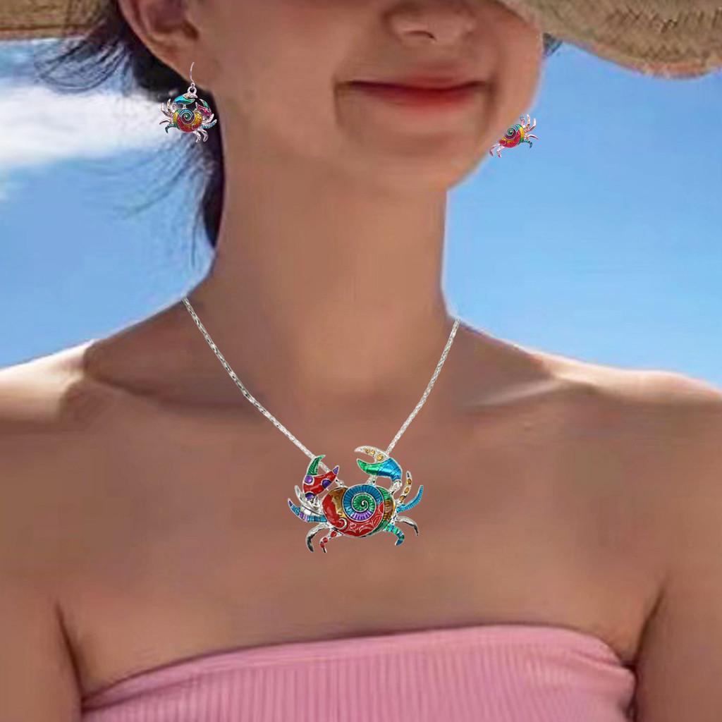 Очаровательный набор украшений с крабом, включающий стильное ожерелье и серьги из сплава для женщин