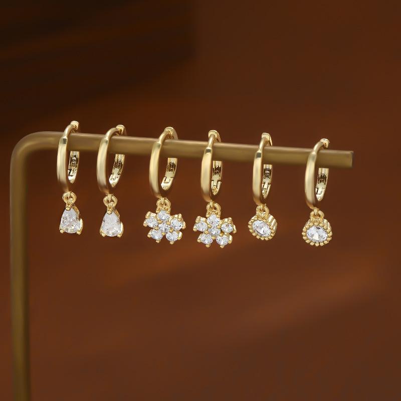 3-Pair Zircon Ear Buckle Set Delicate Shiny Cute Style Women's Party & Daily Wear Fashion Trendy Ear Jewelry Accessories