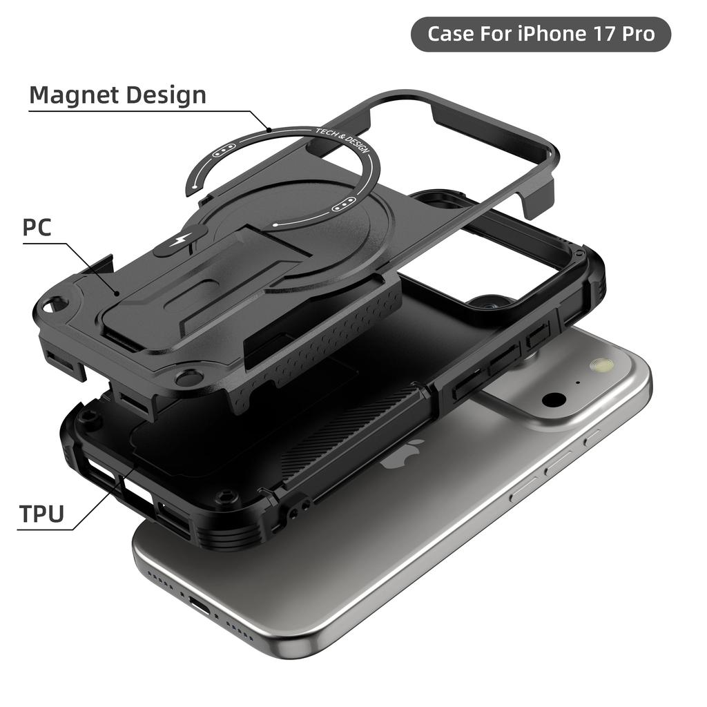 Военный Противоударный Чехол-Держатель Магнитный Чехол для Телефона для IPhone 17 16 15 14 Plus 13 12 Pro Max 11 16E Держатель Жесткая Защитная Задняя Крышка