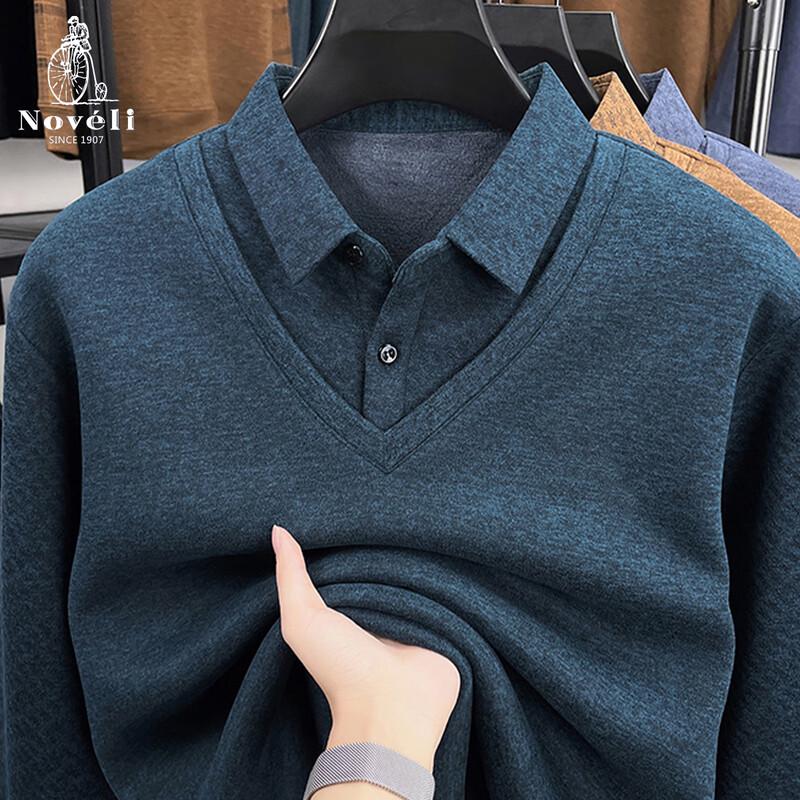 Мужской флисовый свитер с воротником-рубашкой из двух частей