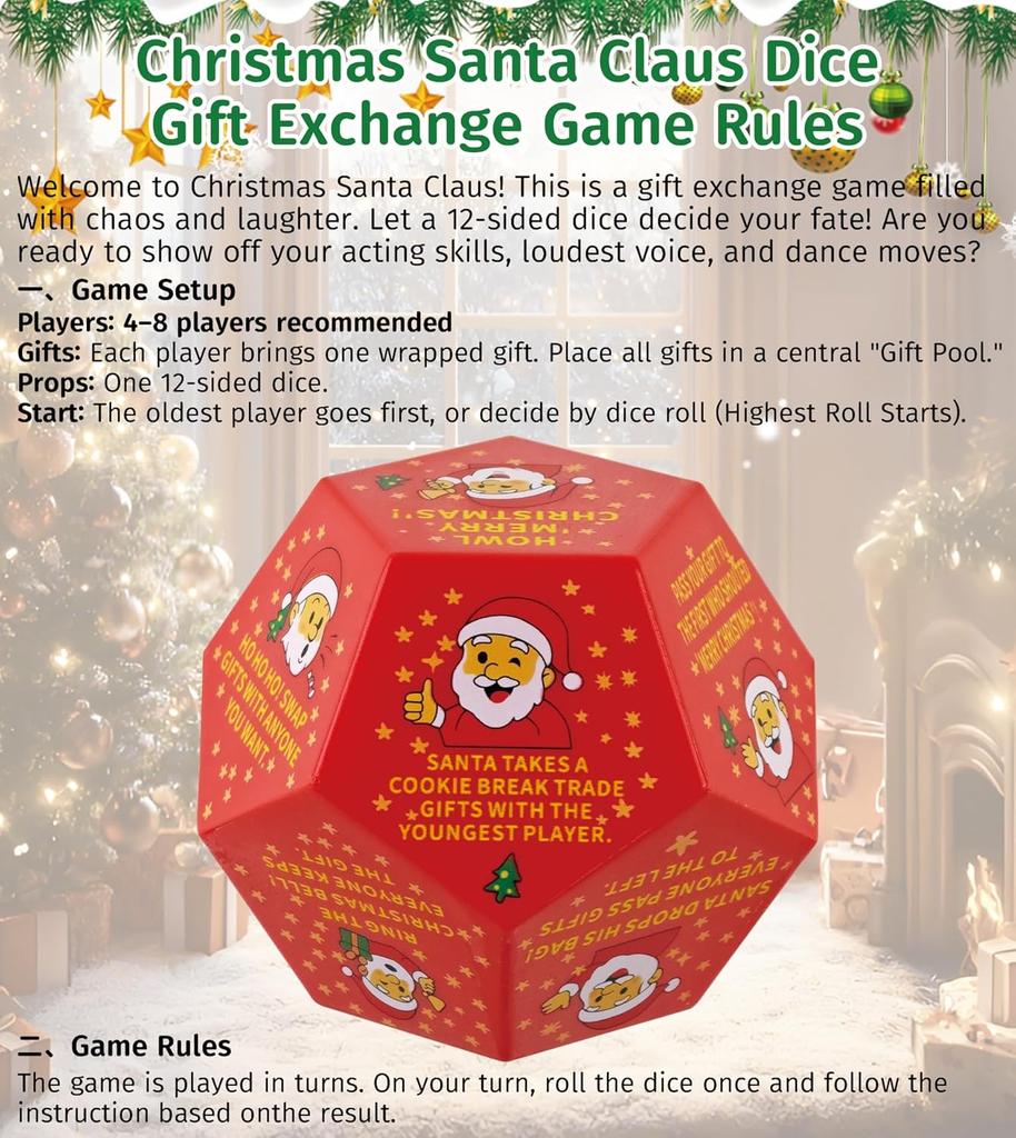 Уморительные кубики для обмена подарками с Сантой, 3*3 дюйма, кубики для обмена подарками, рождественские наполнители для чулка, игры с кубиками для обмена подарками для семейной вечеринки, подарки на Рождество
