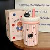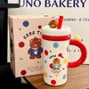 Cartoon Straw Cup Large Capacity Ceramic Drinking Cup with Lid Cute Animal Breakfast Milk Cup Souvenir