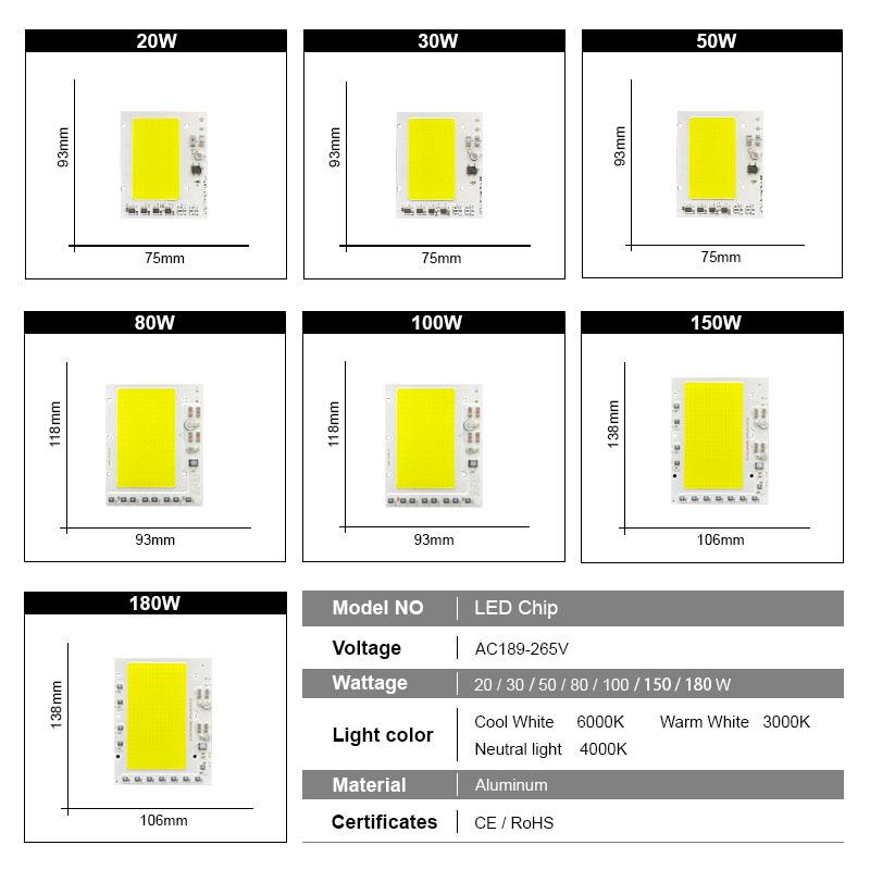 Светодиодный COB лампа Бусина 180 Вт 150 Вт 100 Вт 80 Вт AC 220 В IP65 Smart IC Не нужен драйвер DIY Прожектор Светодиодная лампа Прожектор Наружный Чип лампа