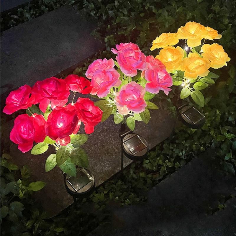 7-головые светодиодные розы на солнечной батарее, цветочный декор для сада, уличное ландшафтное освещение для дорожек, декоративные атмосферные огни для газона