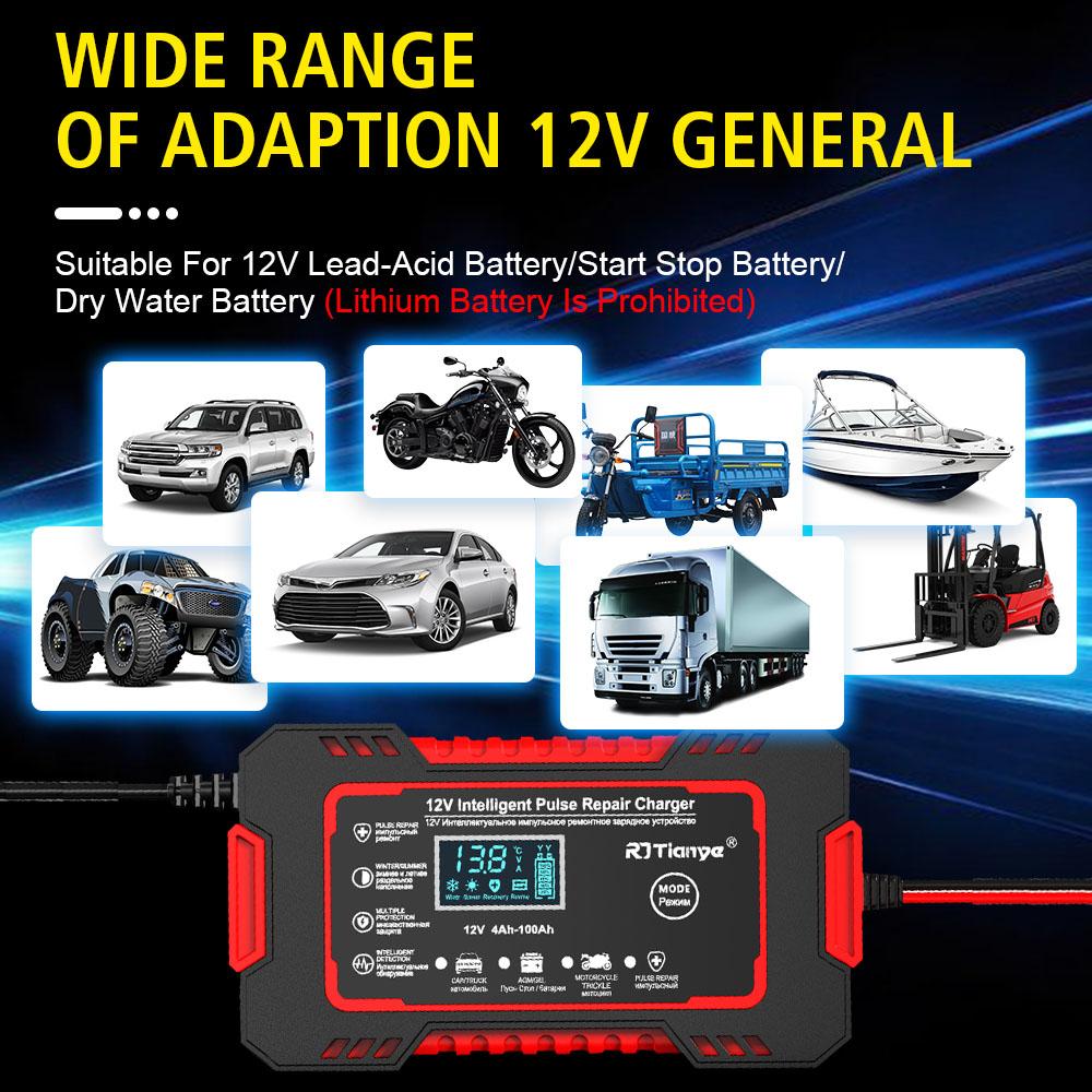 Быстрая зарядка ЖК-дисплей 12В 6А Зарядное устройство для автомобильного аккумулятора Импульсное восстановление питания Для Авто Мото Мокрый Сухой Свинцово-кислотный AGM Гелевый Универсальный