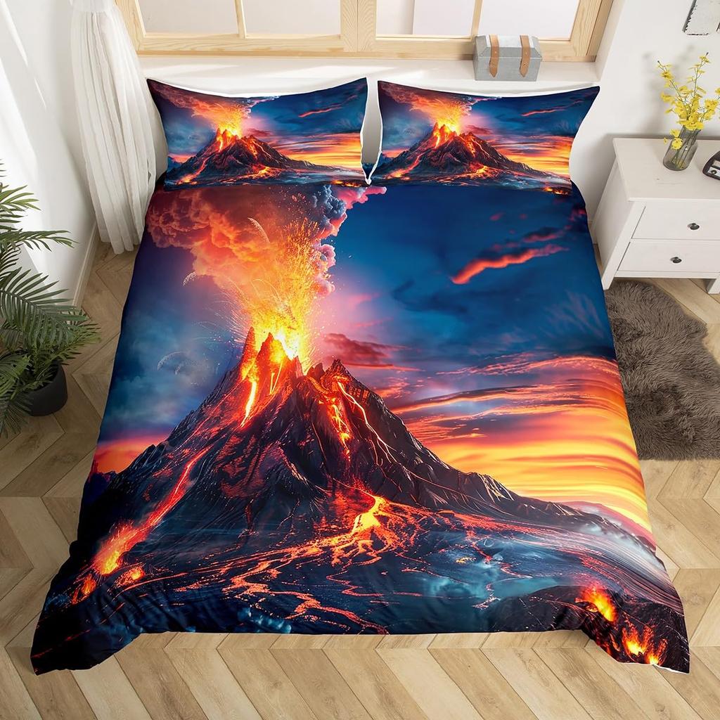 Комплект пододеяльника «Вулкан» с рисунком извержения вулкана, комплект постельного белья, чехол для одеяла «Огненная гора», декор для спальни для мальчиков, девочек, женщин, мужчин