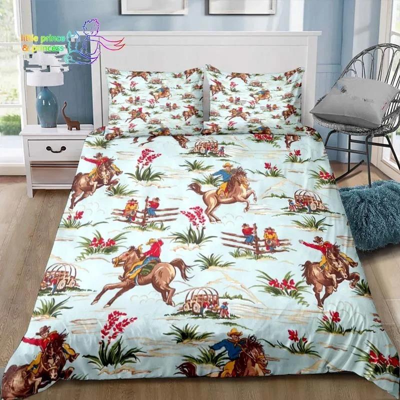Cowboy Horse Pattern Comfortable Duvet Quilt Cover Pillowcase Bedding Set Children Bedroom Decoration Home Textile