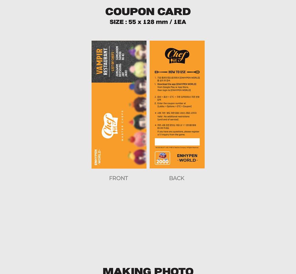 🤍 КОЛЛЕКЦИЯ КУПОННЫХ КАРТ ENHYPEN WORLD [CHEF BASIC] вер.. 🤍