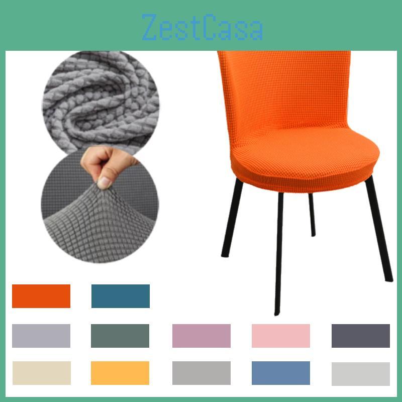 Modern Elegant Arc-shaped Velvet Stretch Round Chair Cushion Cover In Rich Orange For Dining Room