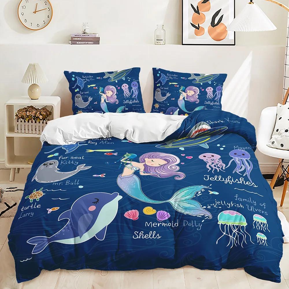 Cartoon Mermaid Bedding Set Comfortable Duvet Quilt Cover Pillowcase Bedding Set Children Bedroom Decoration Home Textile
