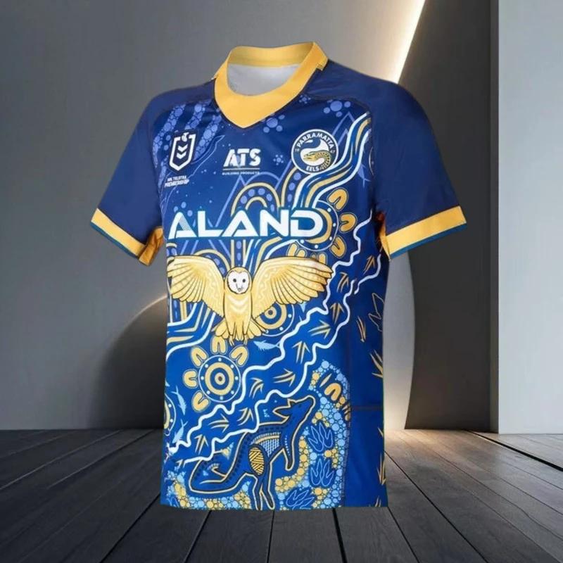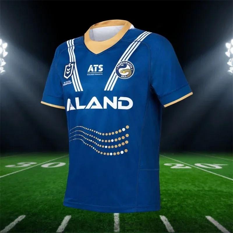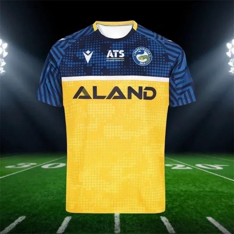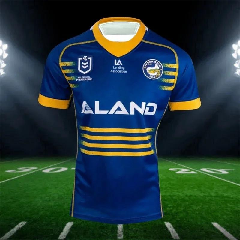 2025Недавно прибывшая мужская домашняя регбийка Eels, летняя дышащая тренировочная футболка для футбола