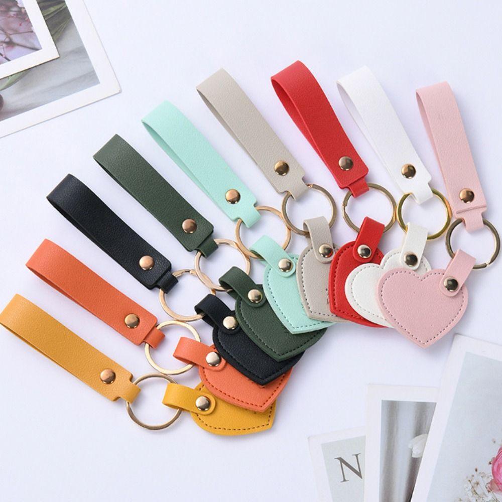 Однотонный кожаный брелок для ключей в форме сердца, ПУ, красочный подвесной шарм, брелок в форме сердца, детский