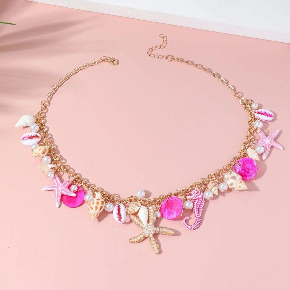 Imitation Pearl Shell Starfish Necklace Sea Series Natural Conch Beach Necklace Kids