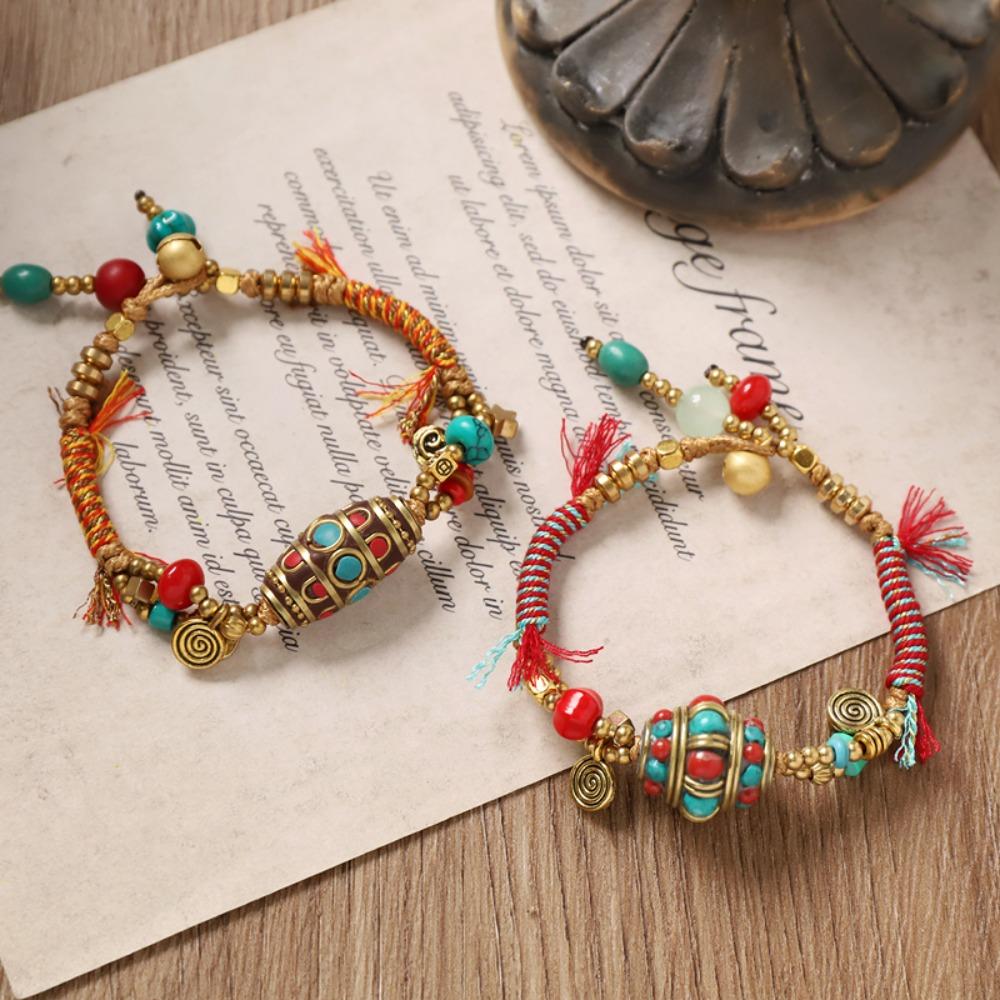 Регулируемый плетеный браслет из вощеного шнура с медными бусинами, плетеный браслет в древнем стиле, этнический браслет для девочек — купить товар онлайн с бесплатной доставкой по всему миру!
