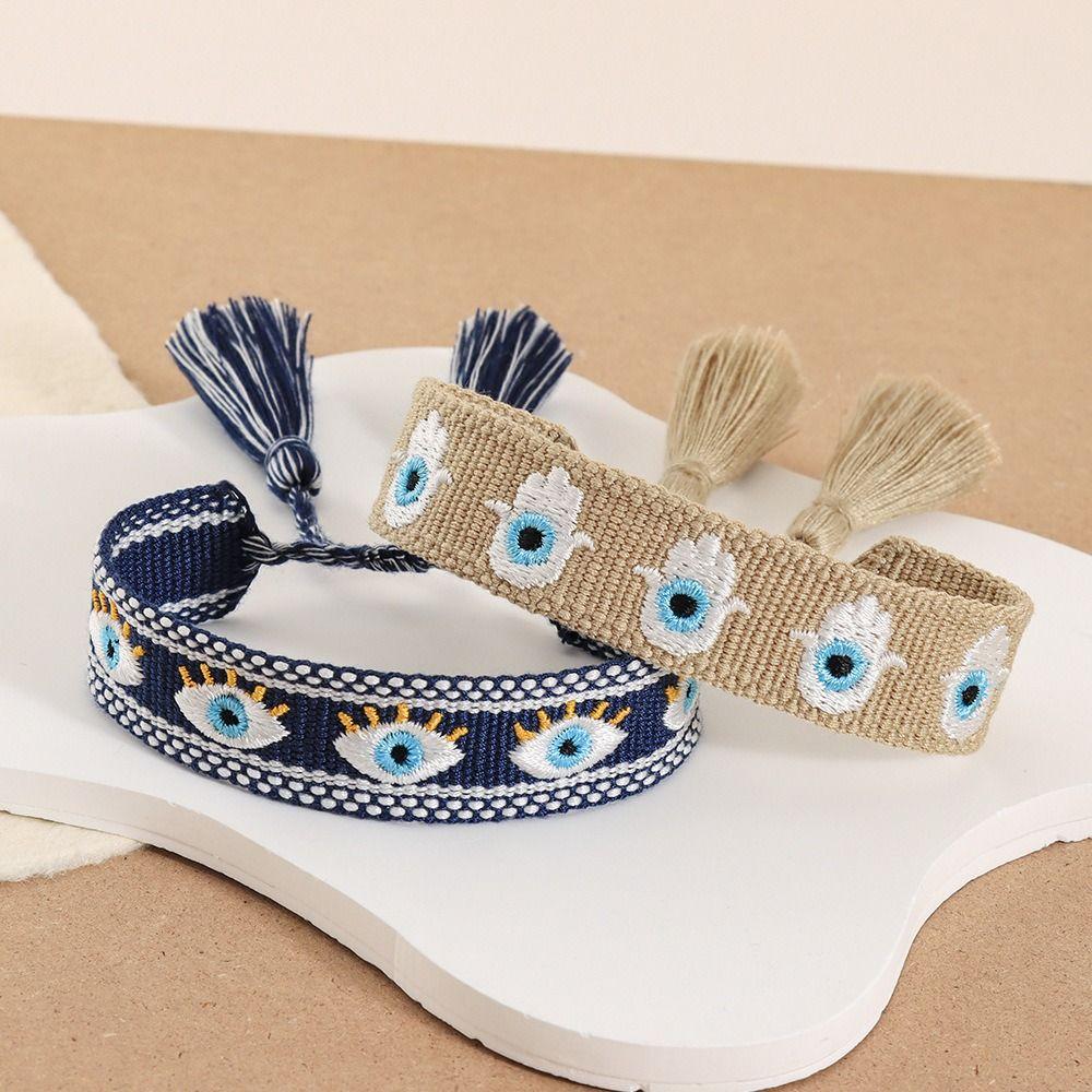 Складываемые плетеные браслеты-шармы, регулируемый веревочный браслет с синими глазами, женский, для девочек