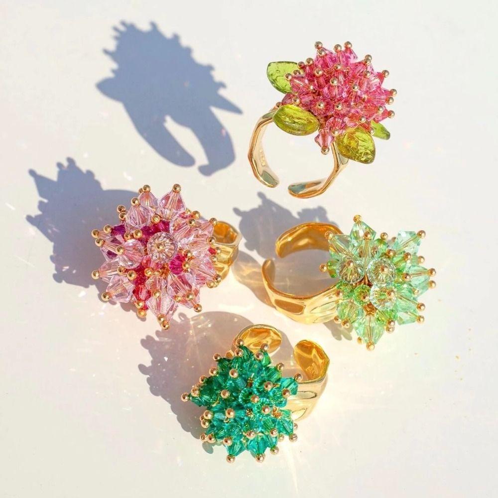 Корейский стиль Y2K Открытое кольцо Фейерверк Пряжка на палец Милое кольцо с бусинами в виде цветка Украшение
