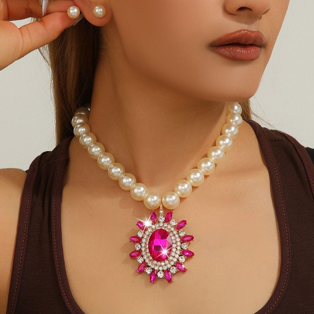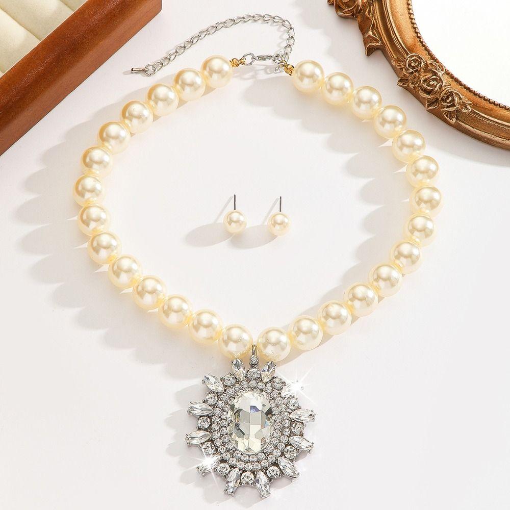 Luxury Necklace Earrings Set Rhinestone Inlaid Women Jewelry Set Bridal