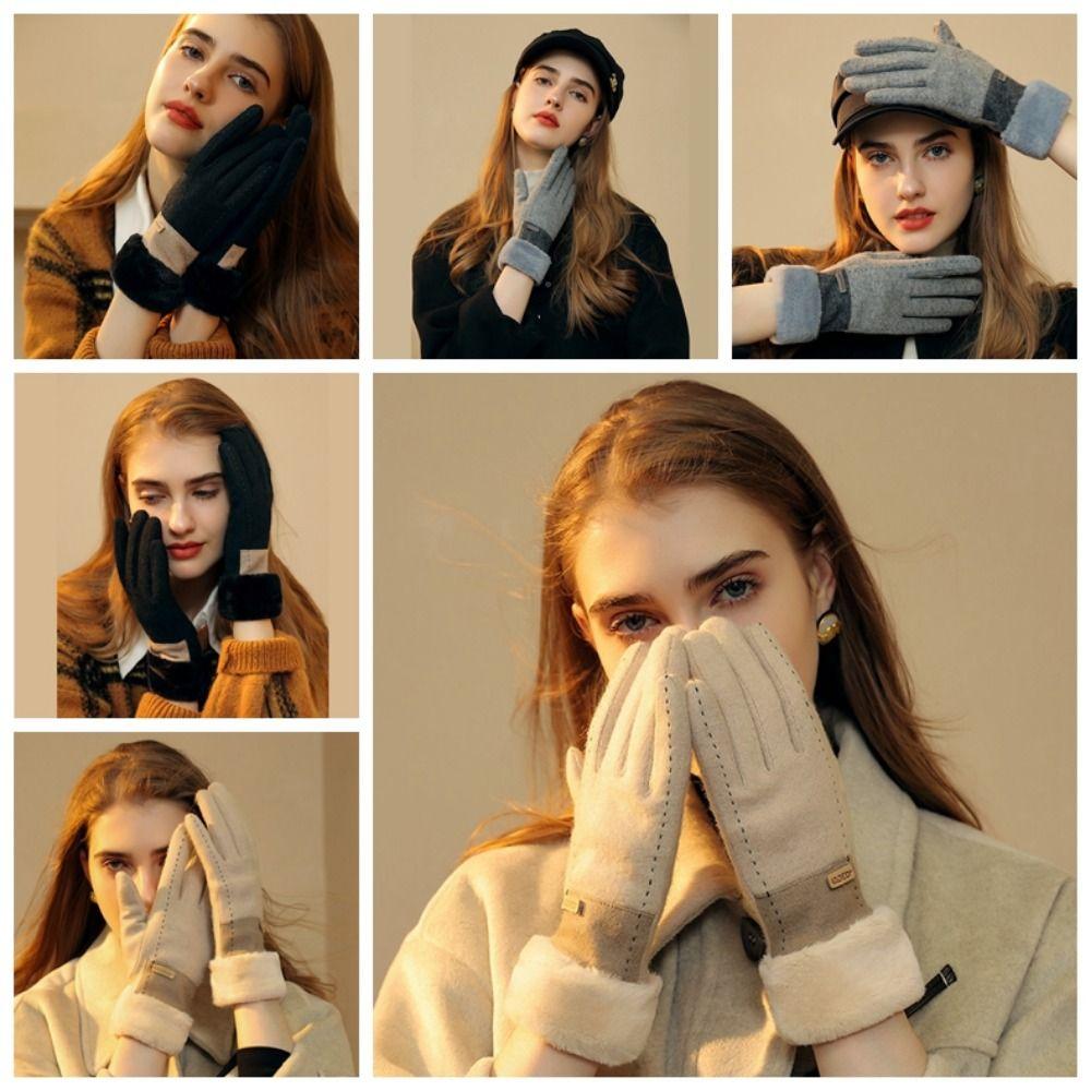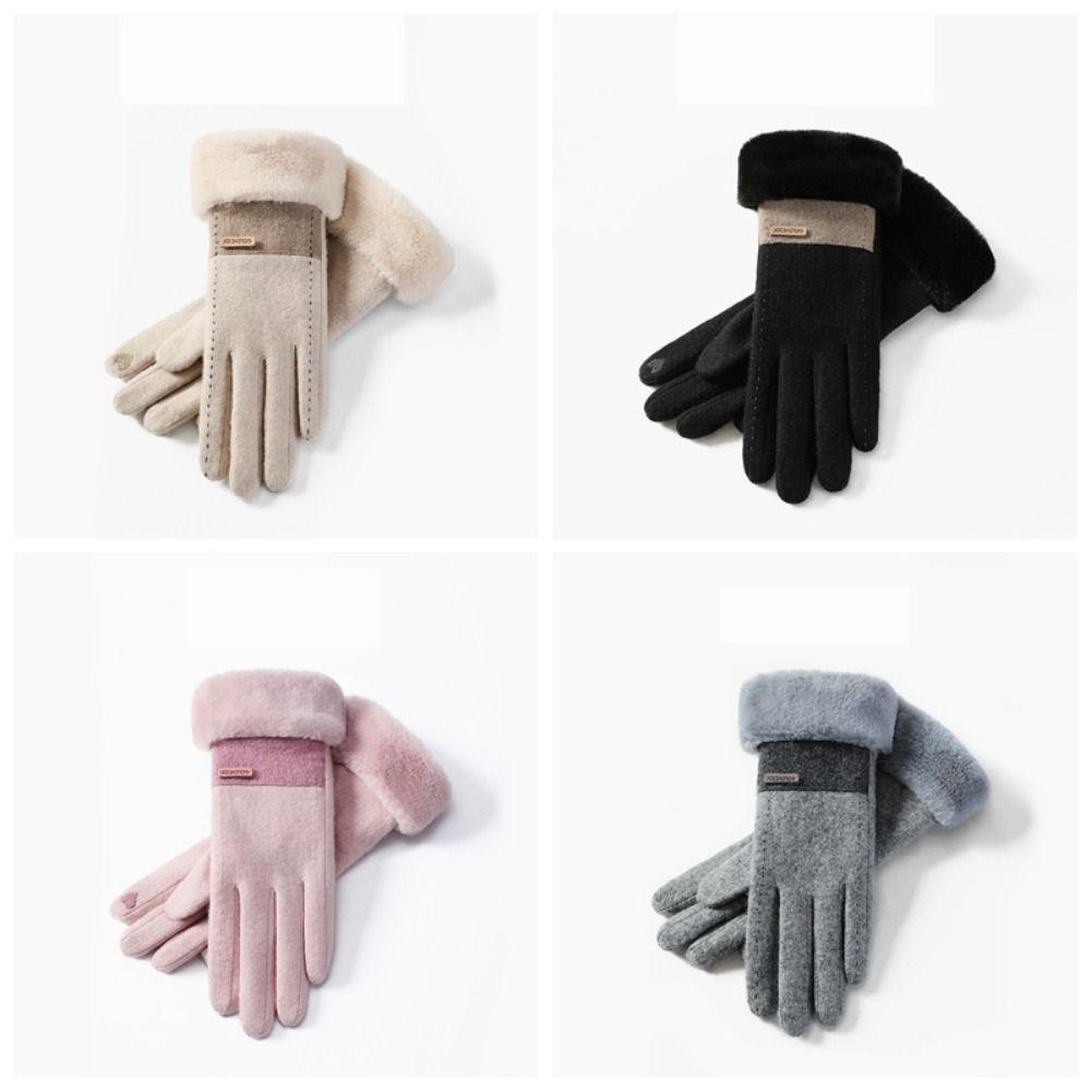 Ветрозащитные перчатки с сенсорным экраном Утепленные женские плюшевые перчатки Кашемировые эластичные варежки Холодная погода