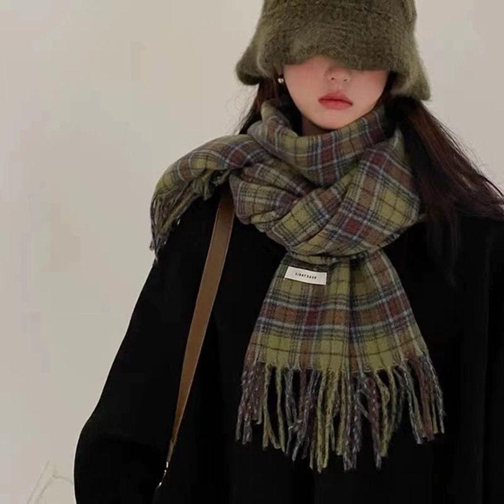 Ретро Зеленый Плед Шерстяной Шарф Плюшевая Накидка Палантин Элегантная Длинная Шаль Осень Зима — купить товар онлайн с бесплатной доставкой до всему миру!