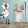Golden Modern Apparel Display Stand, Sturdy Steel Garment Rack, High-Capacity 30kg/66lbs Retail Display System, 120x40x150cm