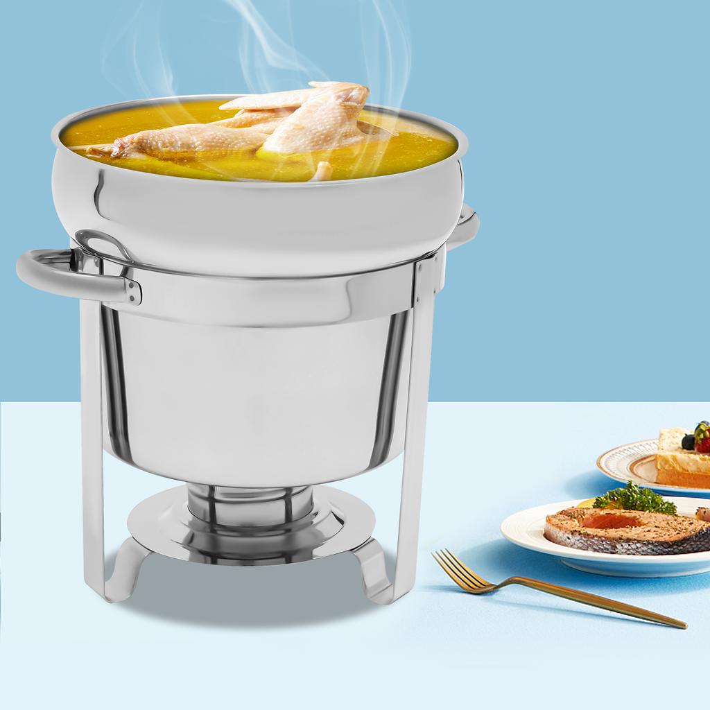 11L/9.9Qt Round Stainless Steel Soup Chafer with Water Pan, Modern Silver Buffet Warmer With Fuel Holder for Catering & Parties