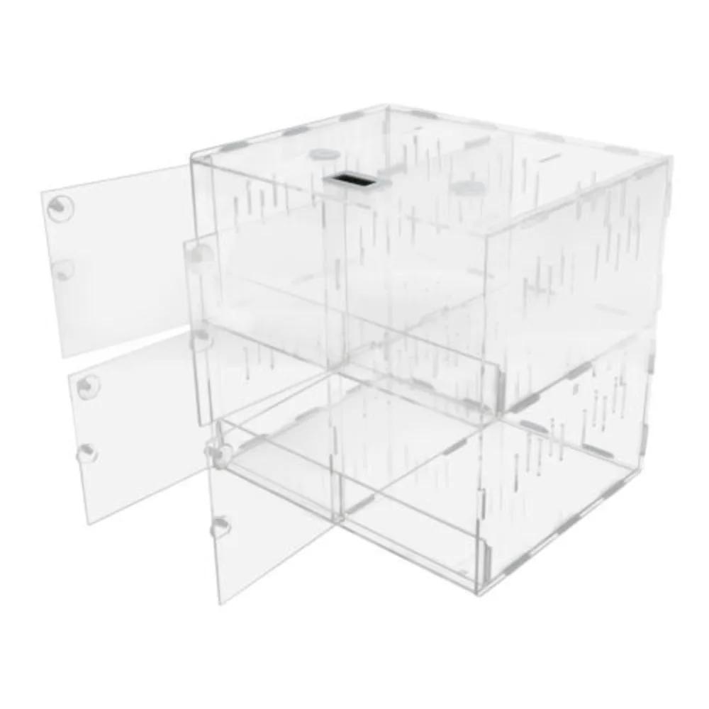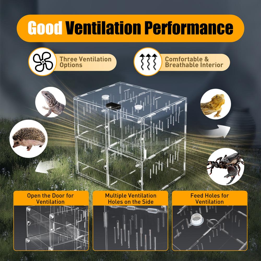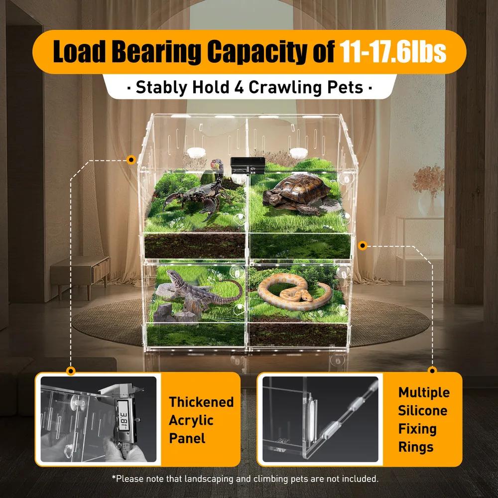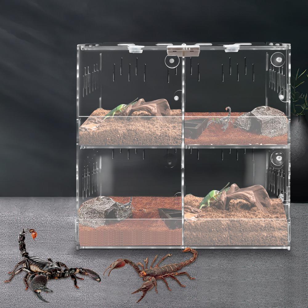 Bymaocar 4-grid Clear Acrylic Reptile Terrariums Climbing Pet Reptile Cage Non-toxic Odorless W/ Thermometer For Laboratory/home