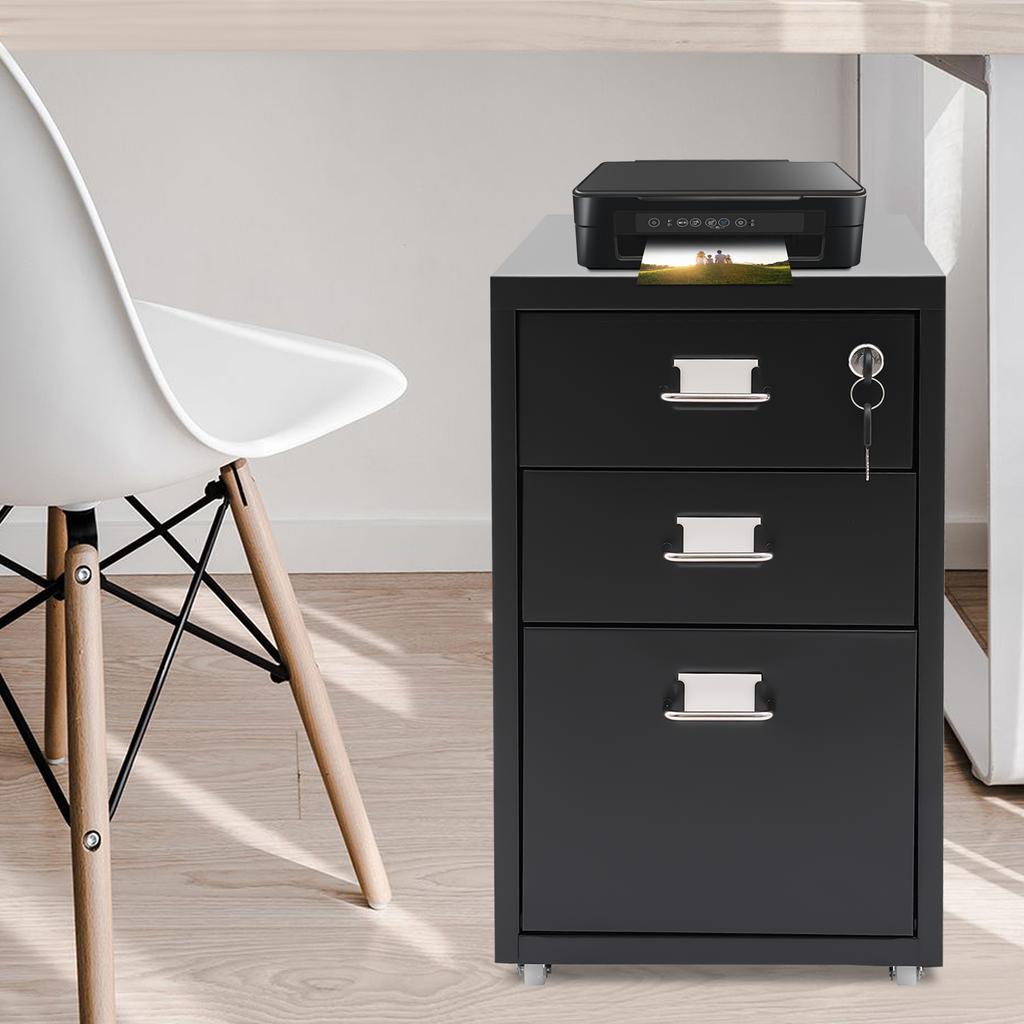 3-ярусный передвижной запирающийся картотечный шкаф, мобильный органайзер для хранения на колесах для офиса, домашнего использования, черный картотечный шкаф с ключевым замком