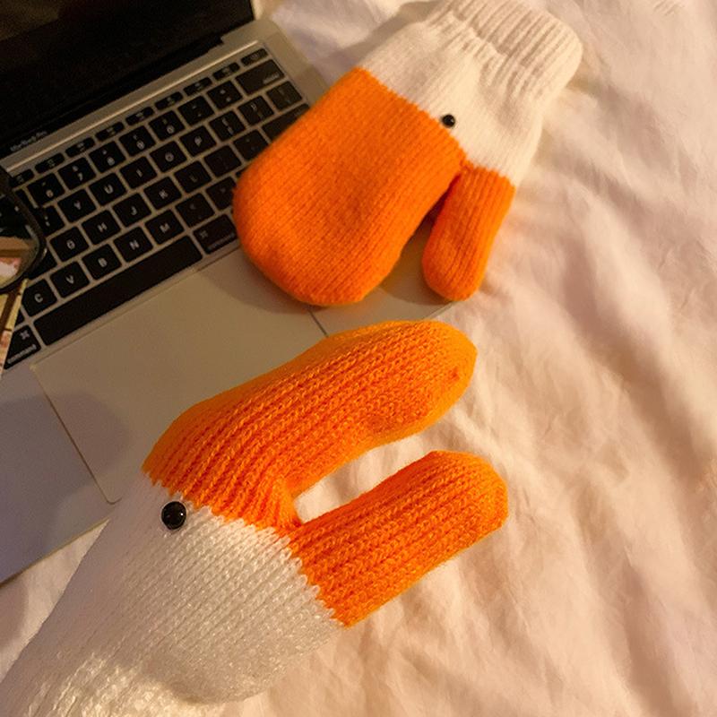 Милые смешные вязаные шерстяные перчатки с гусем для женщин, зимние утолщенные теплые непродуваемые перчатки, идеальный подарок для нее