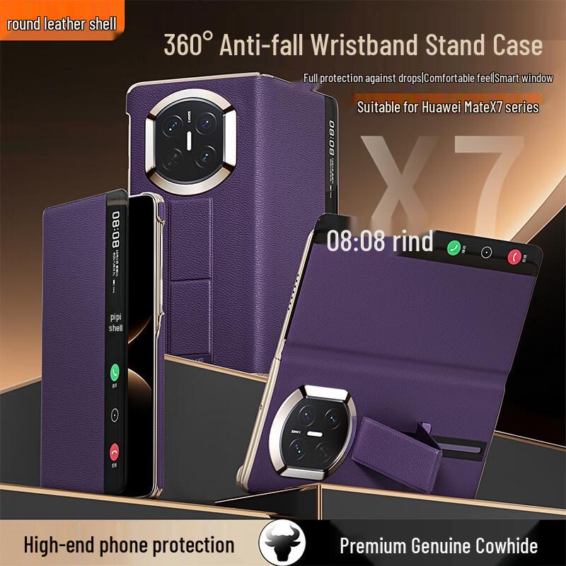 Чехол-книжка из натуральной кожи Huawei Mate X7 с ремешком на запястье