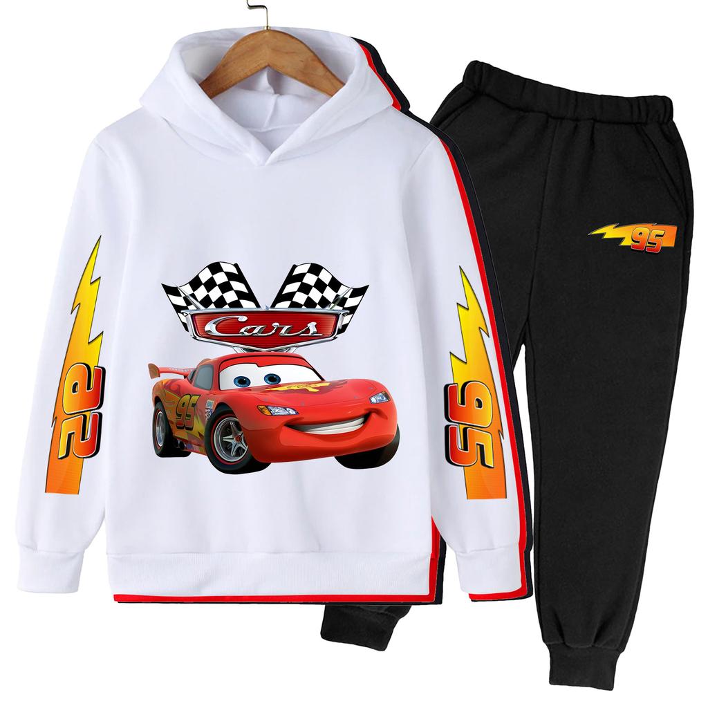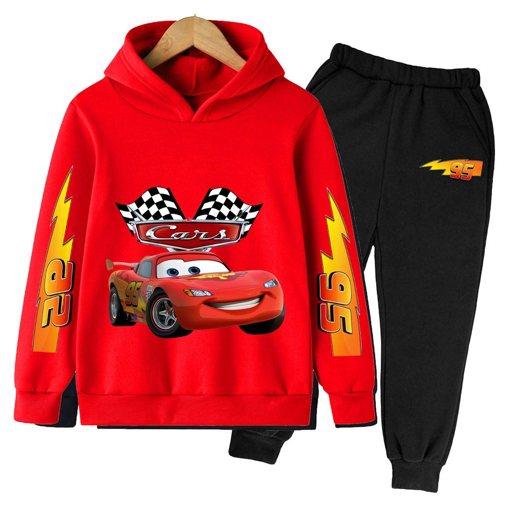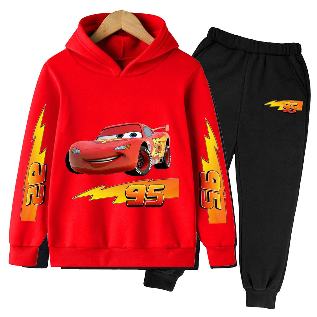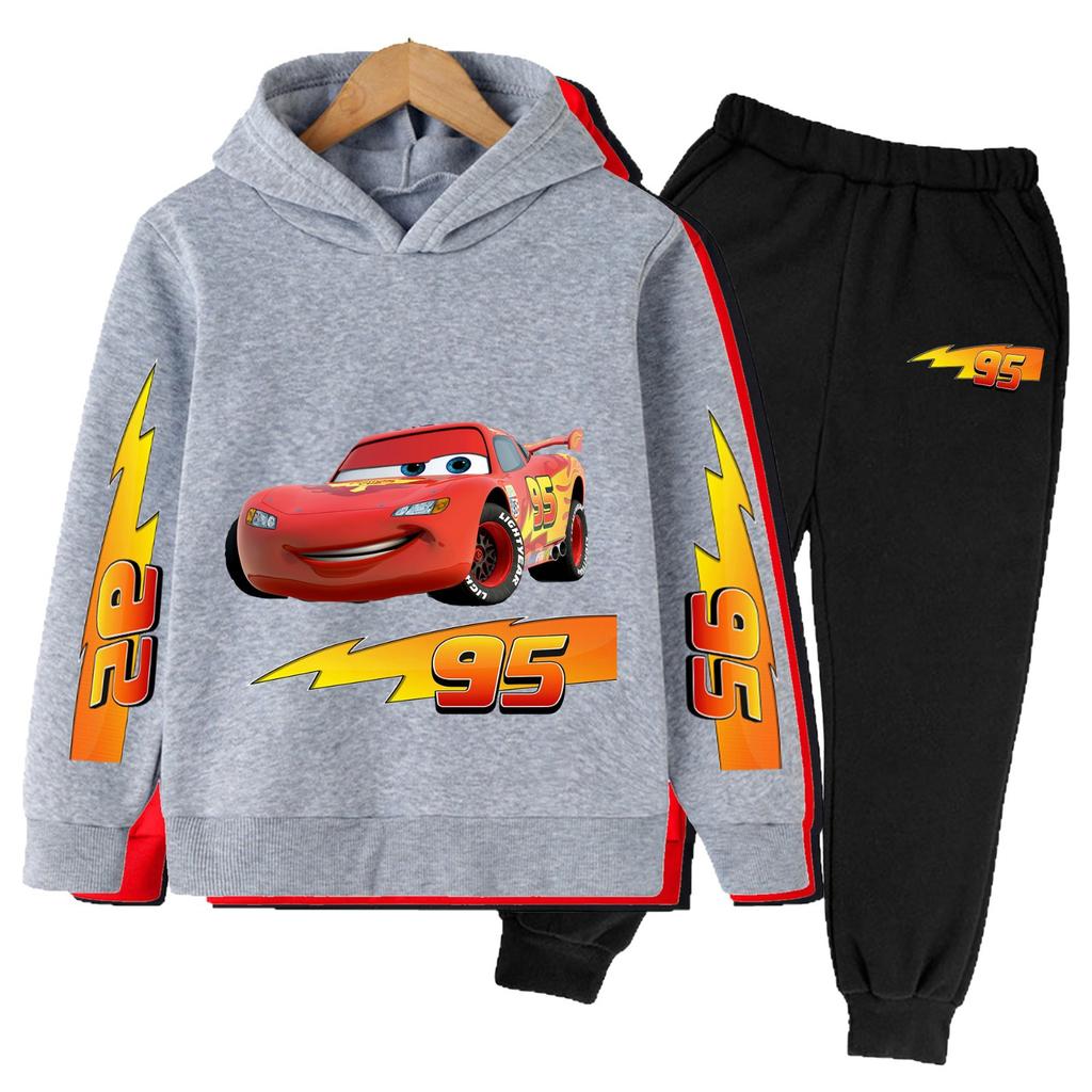 Мультяшное Аниме Молния Маккуин Модный Крутой Принт Свободный Теплый Удобный Толстовки с Длинным Рукавом Комплект для Мальчиков Девочек