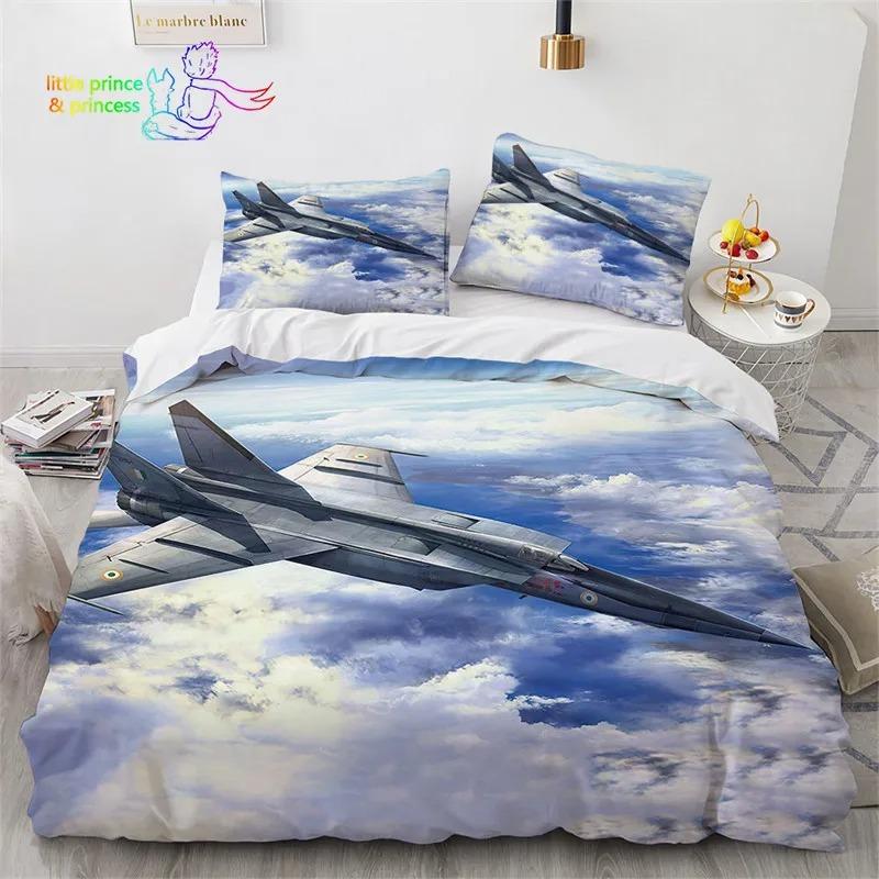 Airplane 3D Print Flying Plane Comfortable Duvet Quilt Cover Pillowcase Bedding Set Children Bedroom Decoration Home Textile