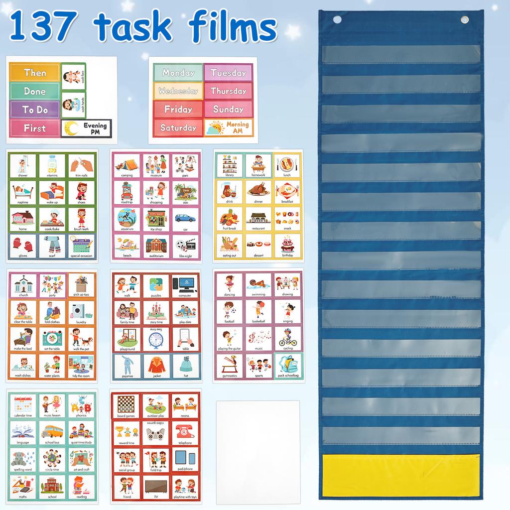 Визуальное расписание для детей Магнитная доска-планировщик на неделю Таблица режима дня для малышей с 137 карточками для домашнего школьного планировщика