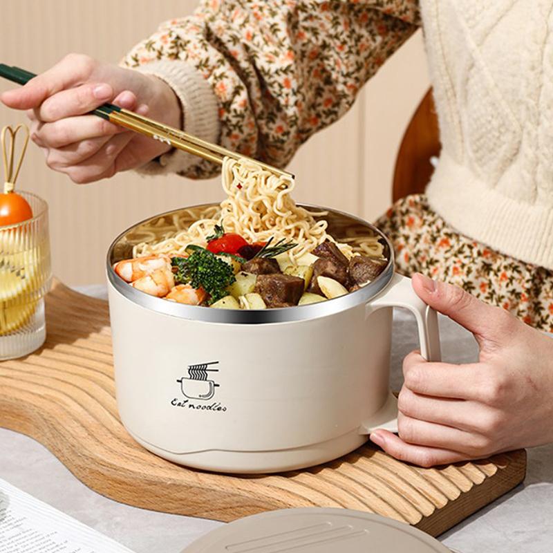 Миска из вспененной нержавеющей стали 304, большая емкость, двухслойная, антиожоговая, ланч-бокс с посудой/крышкой, может сливать миска для рамэна — купить товар онлайн с бесплатной доставкой по всему миру!
