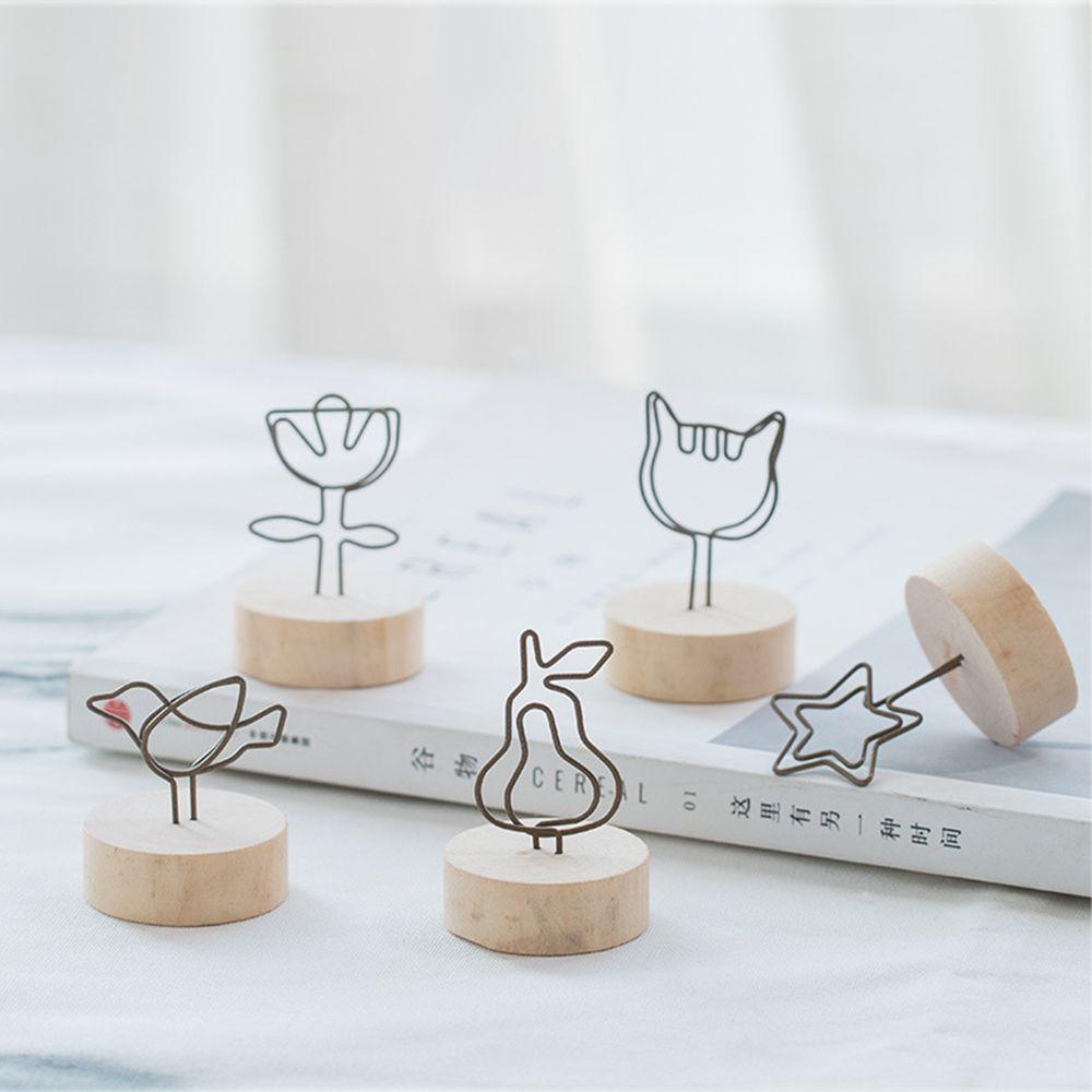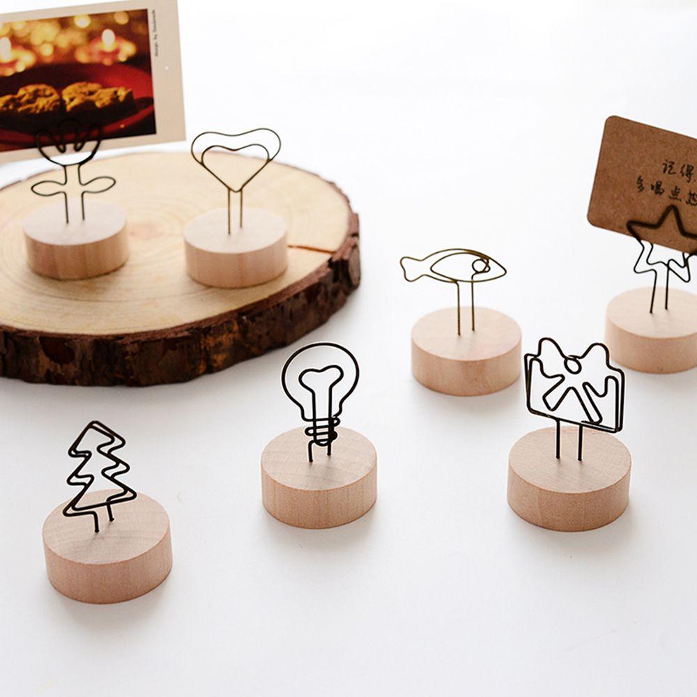 Memo Card Desktop Ornament Photo Frame Picture Clip Round Wooden Holder Message Left Supporter