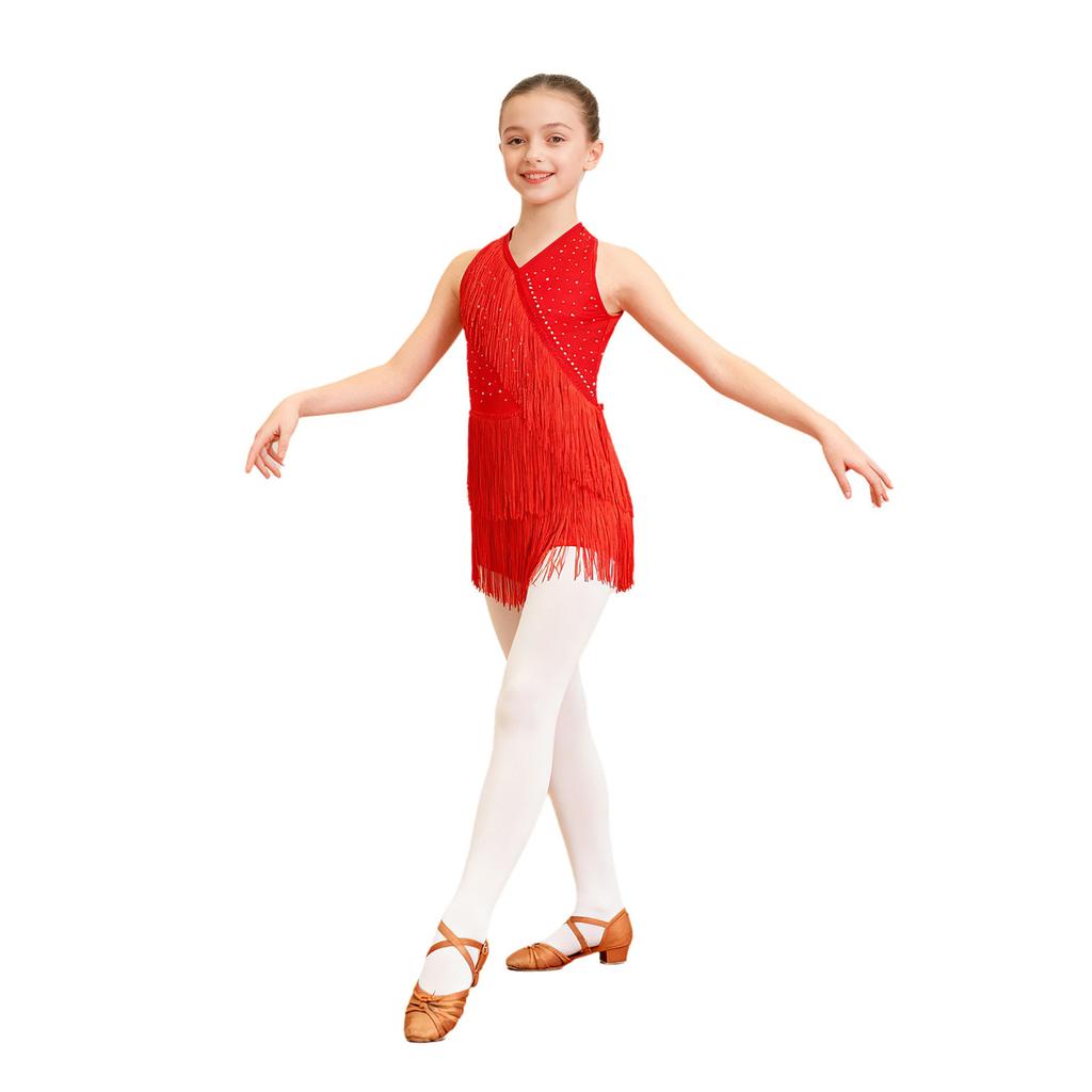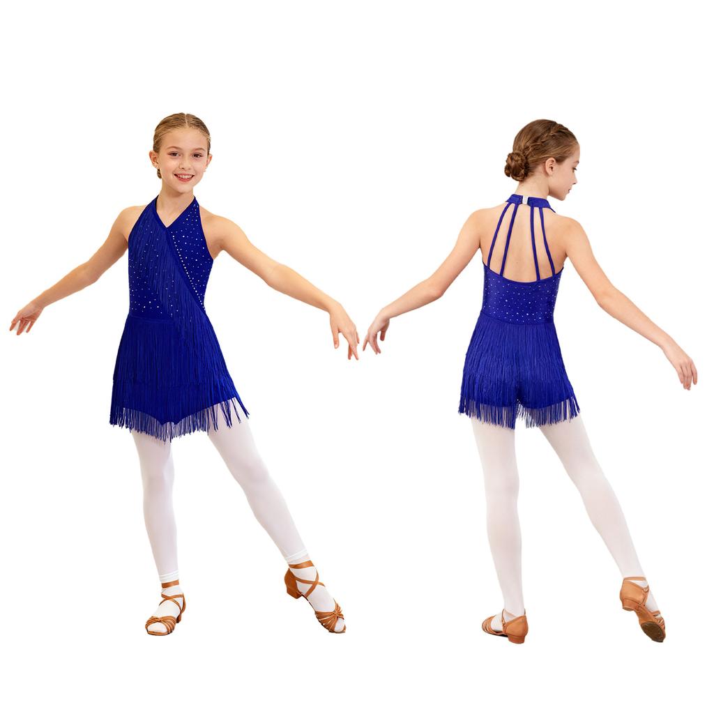 Платье для латинских танцев для девочек, блестящее платье без рукавов с бахромой, детское трико с кисточками и юбкой, одежда для вечеринок