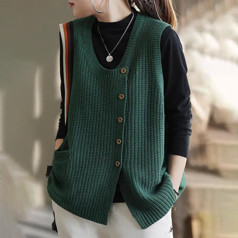 Жилет женский без рукавов топы вязаный жилет свитер оверсайз ретро свободный пуловер повседневный V-образный вырез жилет — купить товар онлайн с бесплатной доставкой по всему миру!