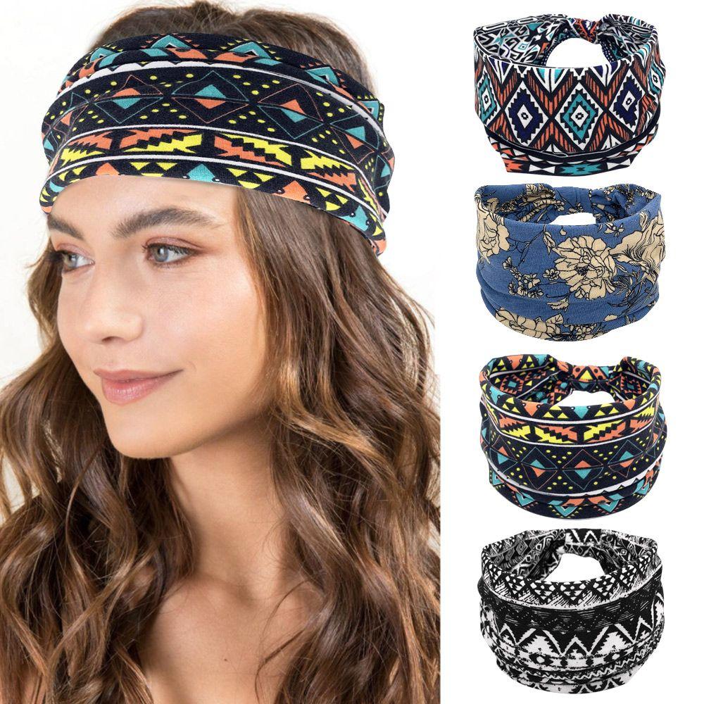 Эластичная повязка-тюрбан на голову, спортивный головной убор, повязка для волос для йоги, женская богемная повязка на голову, широкополая повязка на голову