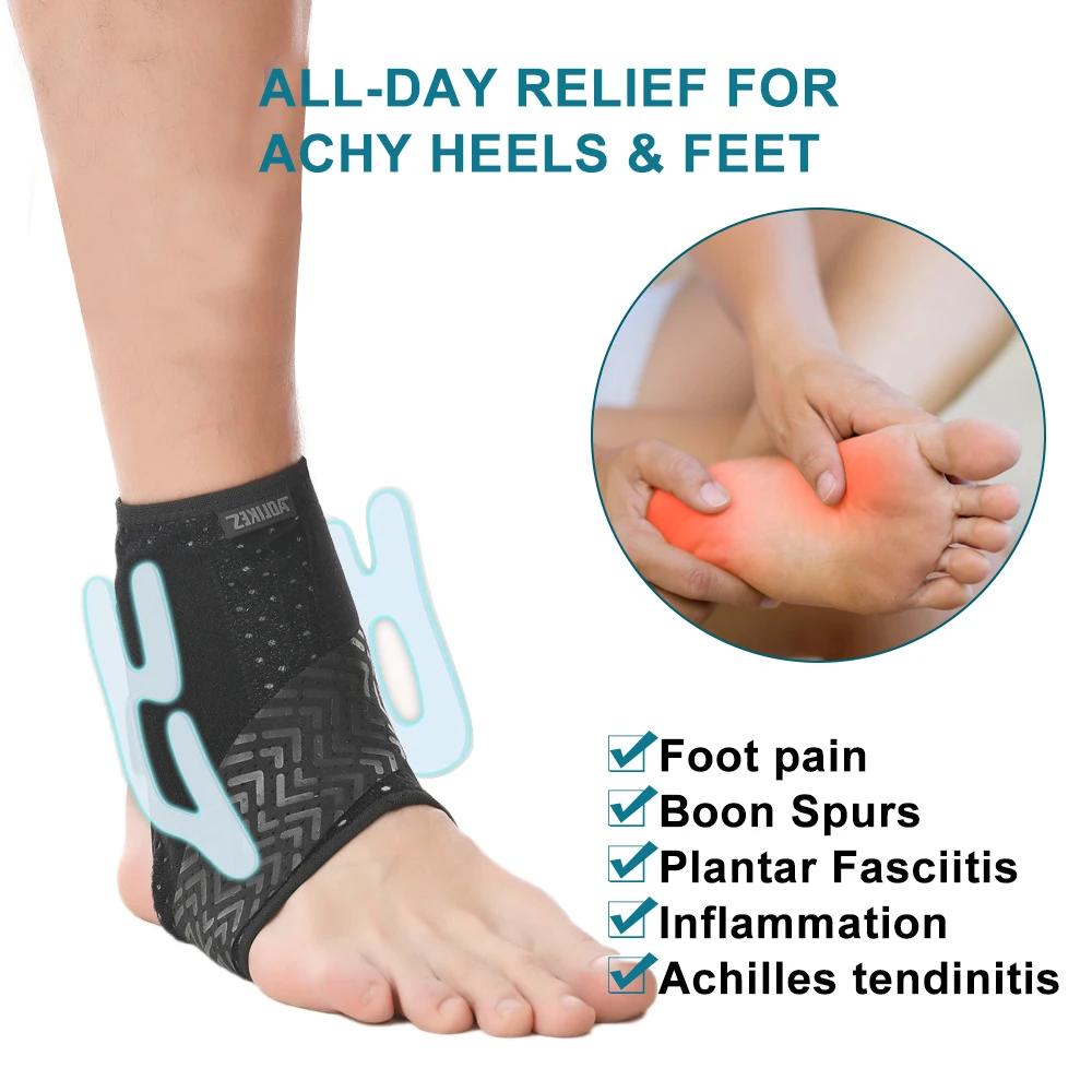 2. Поддержка и защита стабильности на 360°: Наш бандаж для голеностопа может хорошо обернуть ваш голеностоп и подошвы, обеспечивает поддержку и защиту на 360 градусов.. Этот бандаж для голеностопа помогает облегчить боль при ахилловом тендините, растяжениях голеностопа, боли в своде стопы, подошвенном фасциите.