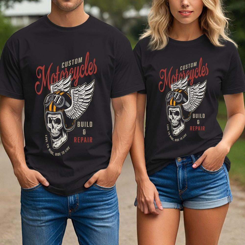 Custom Motorcycles Shirt Unisex Biker Skull Tee Ride to Live Build andRepair Wings