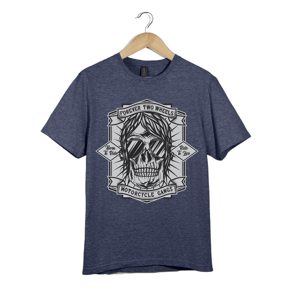 Motorcycle Skull T-Shirt – Forever Two Wheels Biker Gang Ride to Live Tee Racer