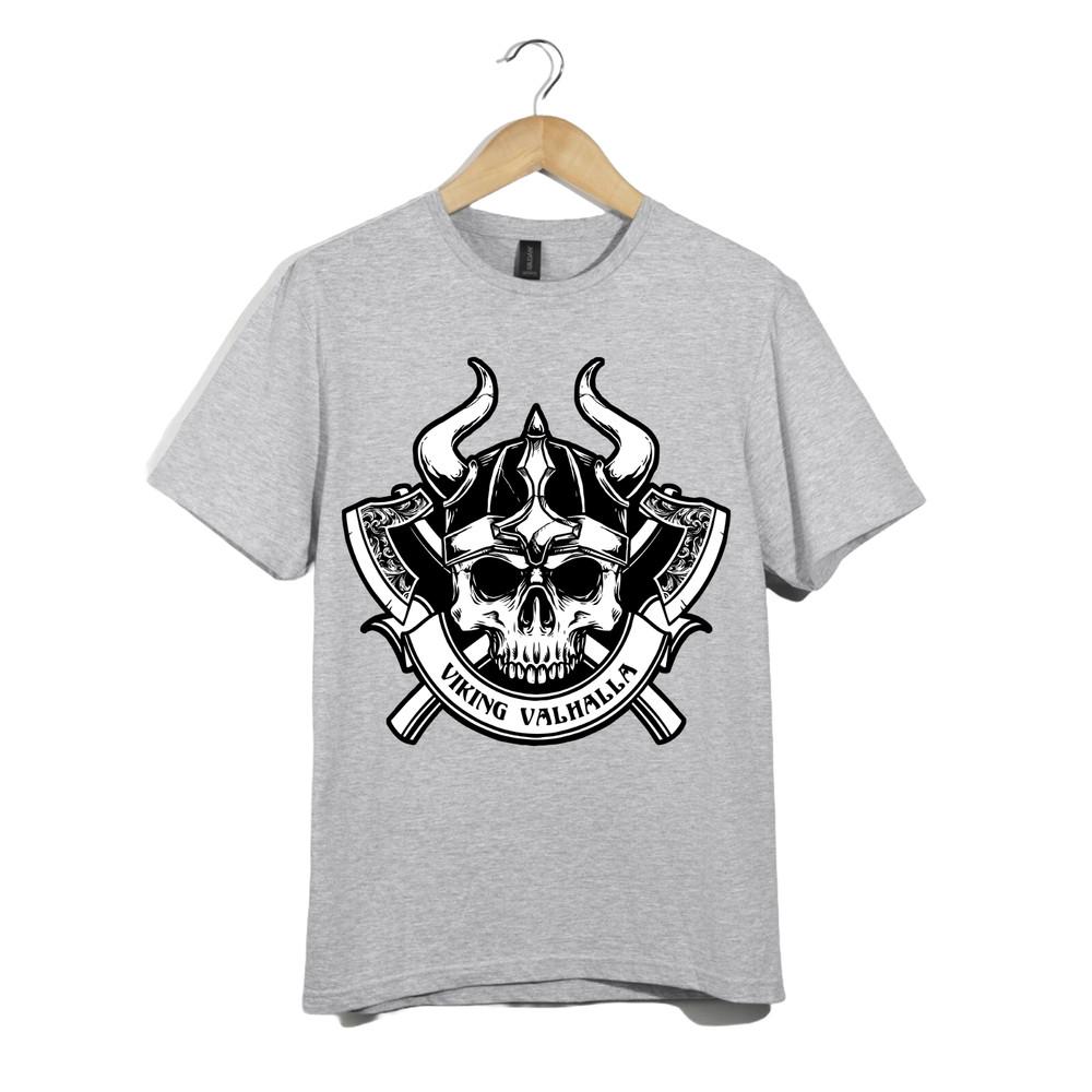 Viking Valhalla Skull T-Shirt – Horned Helmet and Axes Norse Warrior Graphic Tee