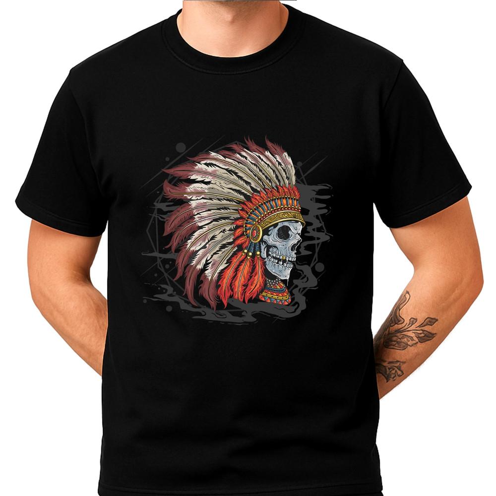 Tribal Skull Warrior T-Shirt Unisex | Gothic Biker Feather Headdress Graphic Tee