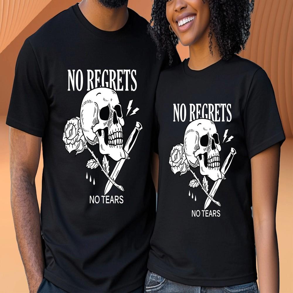 Готическая панк-футболка унисекс Без сожалений Без слез Череп Татуировка Роза Нож Подарочная футболка