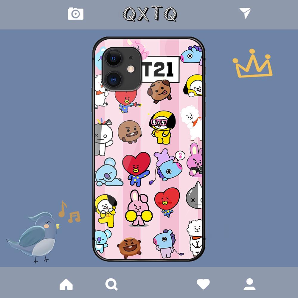 BT21 Милый Kpop Мультяшный Чехол для iPhone Samsung Galaxy Redmi Note S 17 16 15 14 13 20 24 25 54 Pro Max Ultra Fe Чехол из Закаленного Стекла