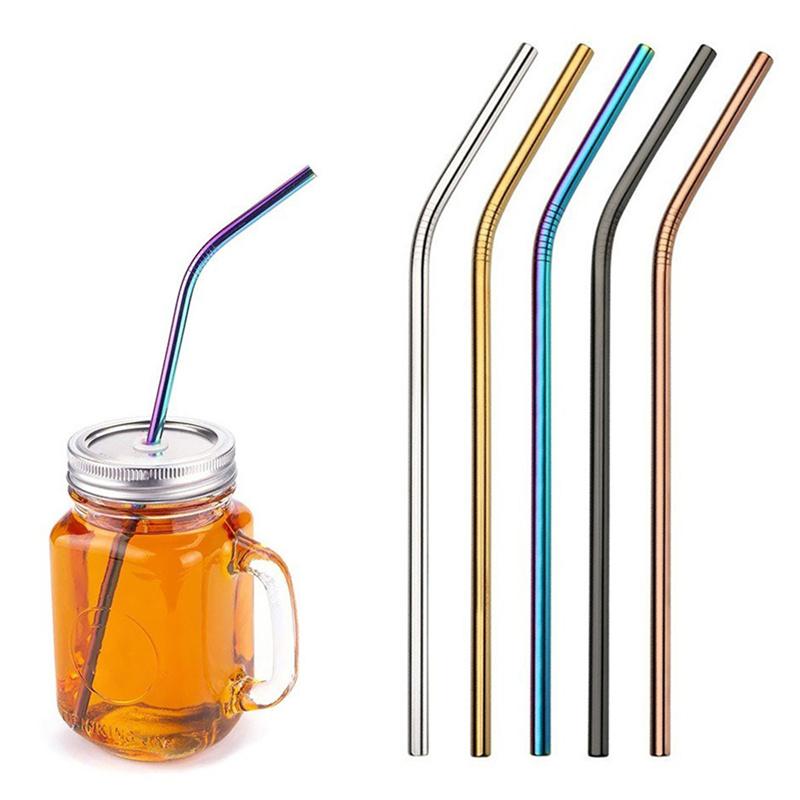 Multicolor Reusable Stainless Steel Straws Bent Straw Drinking Metal Straws [Random Color]