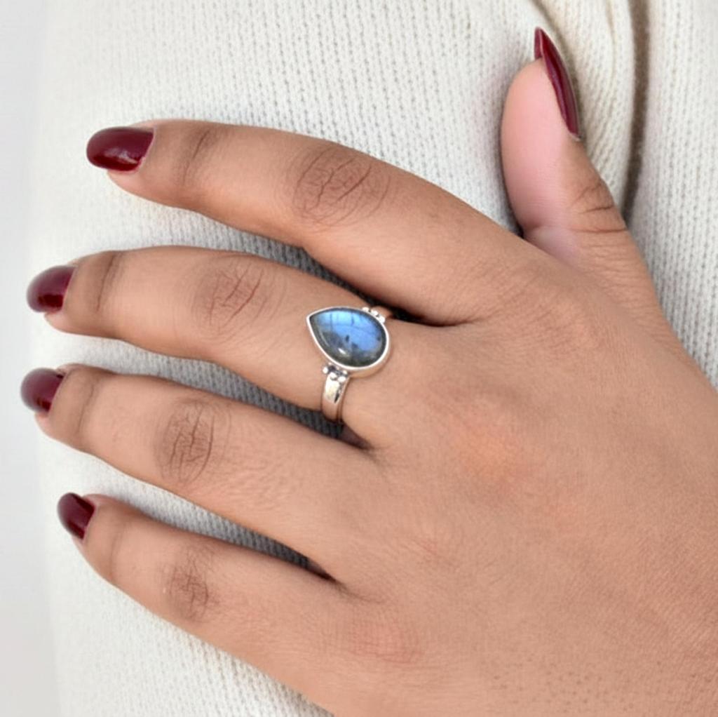 Кольцо-заявление с голубым лабрадоритом, серебро 925 пробы, ручная работа, минималистичные богемные украшения, подарок для нее — купить товар онлайн с бесплатной доставкой по всему миру!