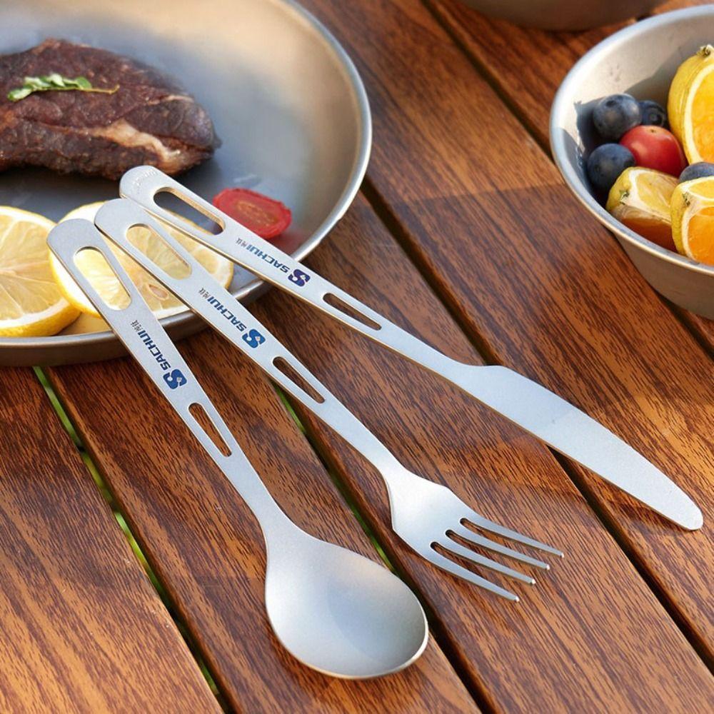 Long Handle Outdoor Camping Fork Portable Cutlery Fork New Titanium Spoon Outdoor Tool